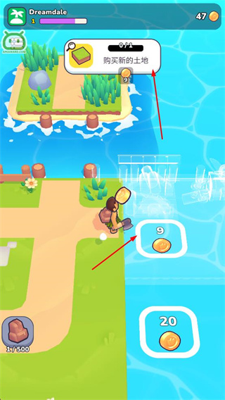 4、獲得金幣后,可用于購買新的土地,拓展游戲中的可探索和建設區(qū)域,購買土地需要消耗相應數(shù)量的金幣。
