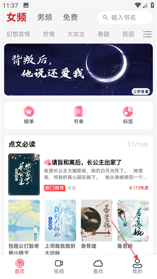 1、進入點文小說首頁,點擊底部我的,進入個人頁面。