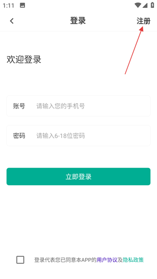3、在登錄頁面,點擊右上角的注冊,進入注冊頁面。
