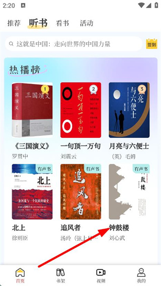 3、選擇要聽的書籍,如鐘鼓樓,進(jìn)入該書詳情頁。