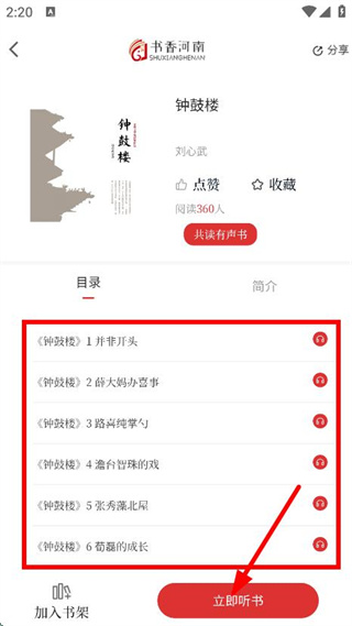 4、在鐘鼓樓詳情頁,點(diǎn)擊立即聽書,開始聽書。