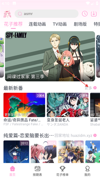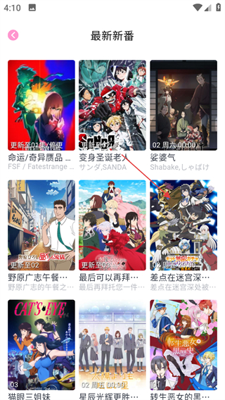 1、進(jìn)入軟件首頁(yè),點(diǎn)擊最新新番旁的更多,進(jìn)入最新新番列表頁(yè)面。