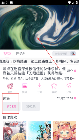 3、在新番播放頁(yè)面的選集區(qū)域選擇集數(shù)觀看,如1,點(diǎn)擊屏幕觀看動(dòng)漫。