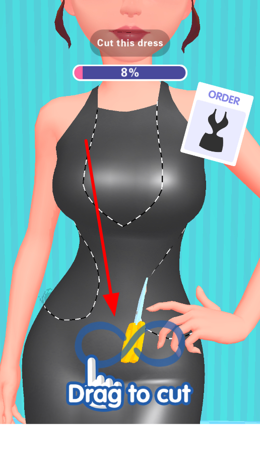 2、對服裝進行剪裁時,通過手指滑動操作,按照設計要求精準地剪裁服裝,塑造出想要的服裝款式。