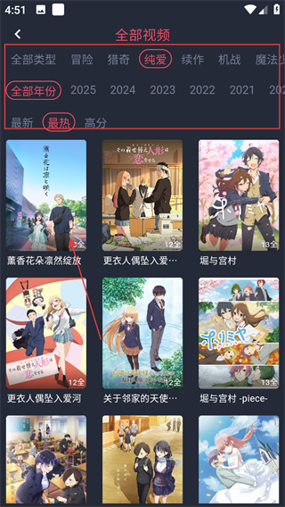 3、在全部視頻頁面,篩選條件后點(diǎn)擊想看的日漫,進(jìn)入播放頁面。