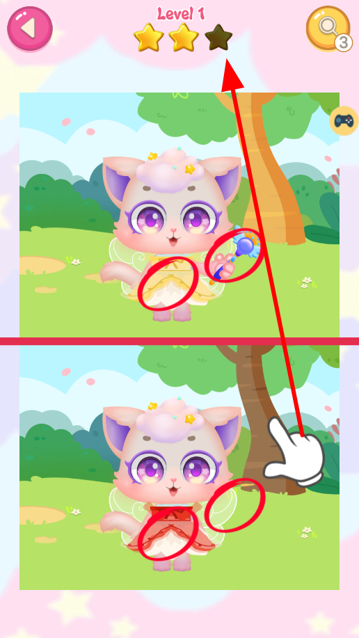 2、找茬不一樣,在關(guān)卡中,仔細(xì)觀察上下兩張圖片,找出它們之間不一樣的地方,點(diǎn)擊這些不同之處。