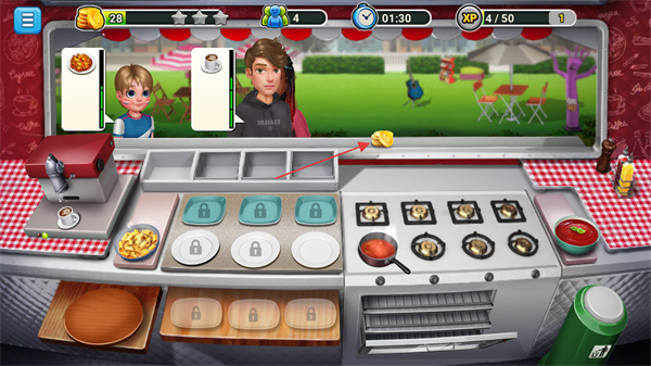 4、將做好的食物交付給顧客,成功獲取金幣,朝著目標(biāo)金額推進(jìn)。