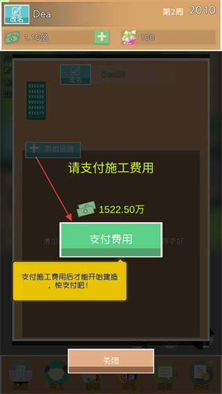 2、看到請支付施工費用提示,點擊支付費用按鈕,花費資金開始建設(shè)樓盤。