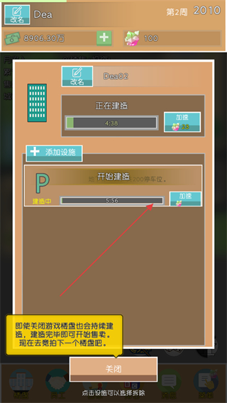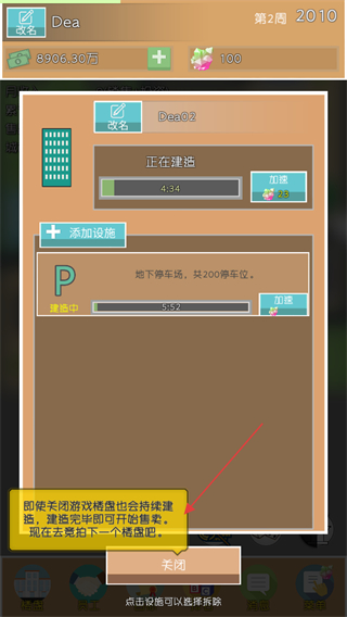 3、支付費用后,樓盤開始建設(shè),點擊加速按鈕可加快建設(shè)進(jìn)度。