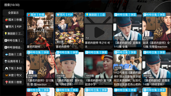 2、在電視篩選頁面,找到暴君的廚師,點(diǎn)擊進(jìn)入其搜索結(jié)果頁面。