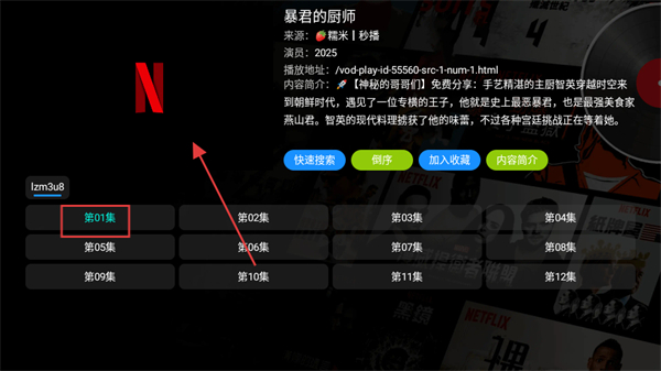 3、在暴君的廚師搜索結(jié)果頁面,點(diǎn)擊對(duì)應(yīng)劇集封面,進(jìn)入劇集播放選擇頁面。