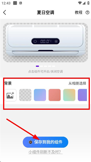 4、在編輯頁面,設(shè)置背景等參數(shù)后,點(diǎn)擊保存到我的組件,保存該小組件。