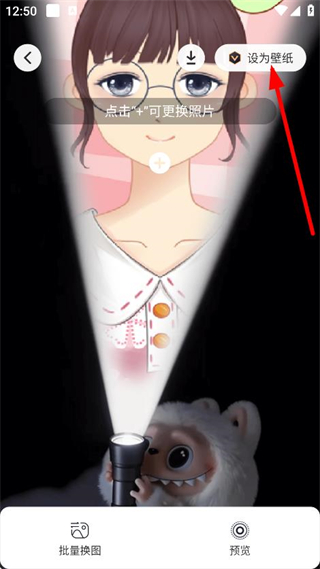 4、在壁紙編輯頁面,點擊設(shè)為壁紙,將編輯好的壁紙設(shè)為手機壁紙。