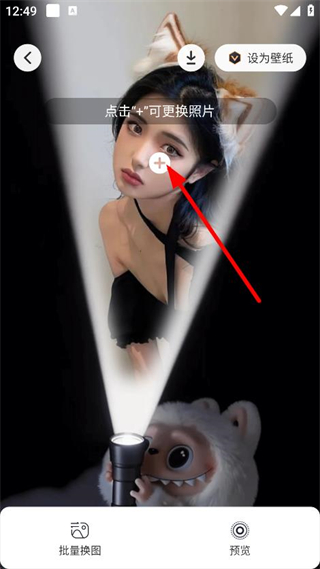 2、隨后我們可以在壁紙編輯頁面,點擊+號,進入照片選擇頁面。