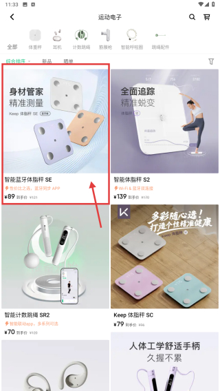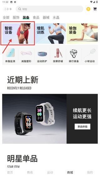 3、在裝備分類中,點(diǎn)擊智能設(shè)備選項(xiàng),查看智能運(yùn)動設(shè)備列表。