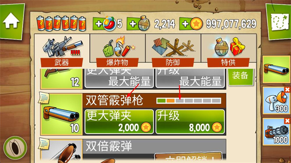 1、在武器界面,可升級(jí)武器,提升彈夾容量和武器性能,消耗金幣進(jìn)行升級(jí)操作,還可使用爆炸物、防御設(shè)施等道具助力戰(zhàn)斗。