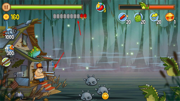 關(guān)卡涵蓋沼澤濕地、廢棄木屋、泥潭區(qū)域等場景,每個(gè)關(guān)卡有不同的敵人波次與挑戰(zhàn)目標(biāo),完成關(guān)卡可解鎖新角色與防守道具,推動(dòng)冒險(xiǎn)進(jìn)程。