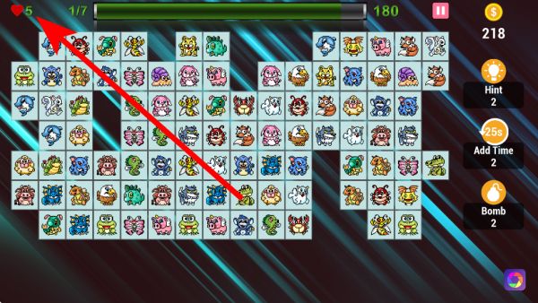 2、左上角顯示生命值,若在規(guī)定步數(shù)或時間內(nèi)未達到通關(guān)要求,會扣除生命值,生命值耗盡則游戲結(jié)束,所以要盡量高效消除動物,保住生命值。