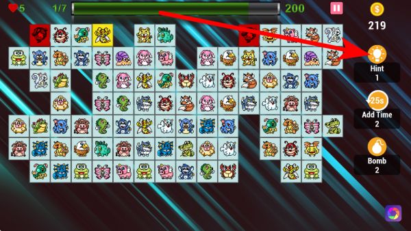 3、右側(cè)有提示道具,點擊后會顯示一對可消除的動物,幫助玩家在難以找到消除對象時找到思路,但提示道具數(shù)量有限,需合理使用。