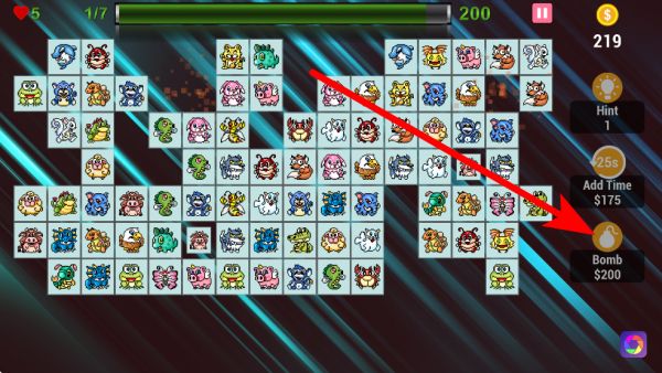 4、右側(cè)有炸彈道具,點擊后會直接用炸彈來消除動物,幫助玩家在難以找到消除對象時找到思路,但炸彈道具數(shù)量有限,需合理使用。