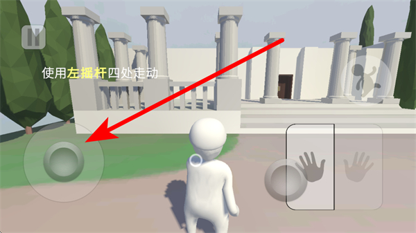 1、進(jìn)入游戲后,使用左側(cè)搖桿控制小人四處走動(dòng),搖桿方向決定小人移動(dòng)方向,通過(guò)靈活操作搖桿,讓小人在場(chǎng)景中自由穿梭,前往不同區(qū)域探索。