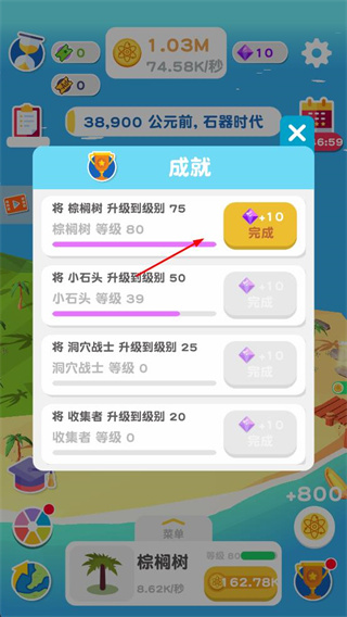 4、完成成就任務(wù),獲取鉆石獎勵,用于提升文明發(fā)展的各項能力,持續(xù)推動文明進程。