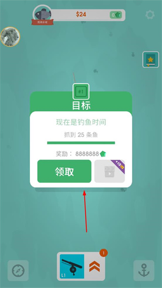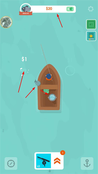 1、在船上釣魚獲取金錢,這是積累資源的關(guān)鍵操作,開啟釣魚經(jīng)營(yíng)之旅。