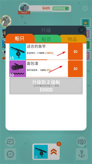 1、升級漁具,提升魚值和海面魚數(shù)量,開啟釣魚經(jīng)營之旅。