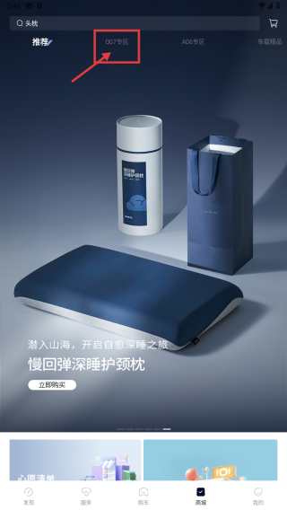 2、在商城頁面,選擇Q07專區(qū),瀏覽專區(qū)內汽車周邊商品。