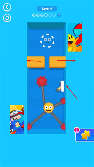 2、進(jìn)入Level4關(guān)卡,操控肢體推開黃色障礙物,同時避開危險道具,為到達(dá)目標(biāo)區(qū)域奠定基礎(chǔ)。