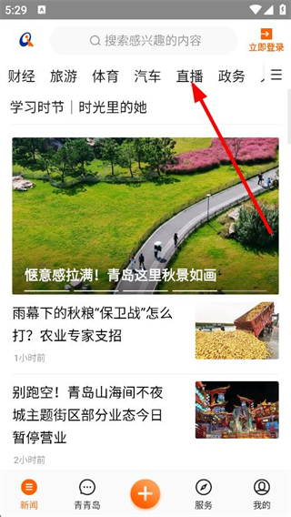 1、在新聞類APP首頁,點擊頂部的直播,進入直播內(nèi)容列表頁面。