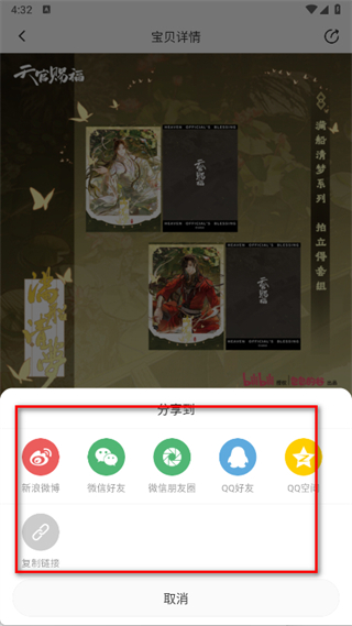 3、在寶貝詳情頁,若想將該商品分享給同好,點擊右上角的分享圖標。