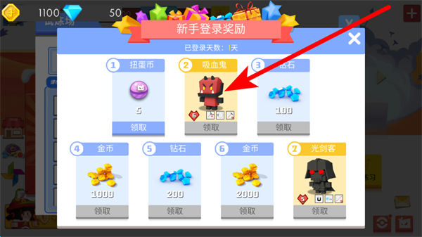 1、作為新手,登錄后能領取獎勵,像扭蛋幣、吸血鬼角色、鉆石、金幣等,這些獎勵可用于后續(xù)強化角色或解鎖內(nèi)容,助力游戲進程。