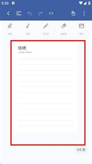 4、在筆記編輯頁面,可使用鋼筆、畫筆等工具在信紙樣式的筆記中進(jìn)行內(nèi)容編輯。