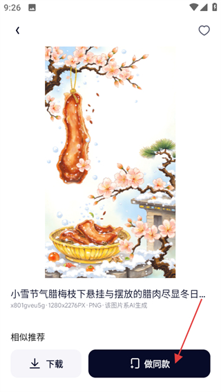 3、在圖片詳情頁面,點(diǎn)擊做同款,可進(jìn)行同款圖片制作。