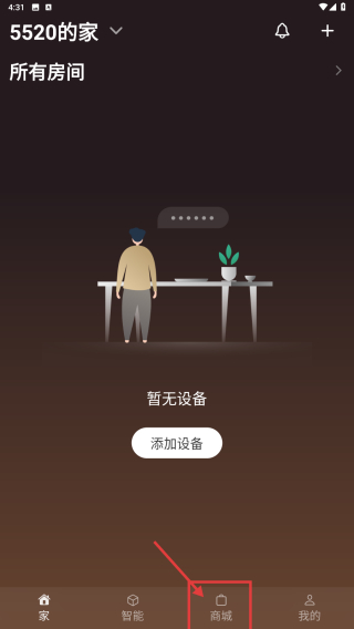 1、打開(kāi)智能家居應(yīng)用,點(diǎn)擊底部商城選項(xiàng),進(jìn)入智家365商城頁(yè)面。