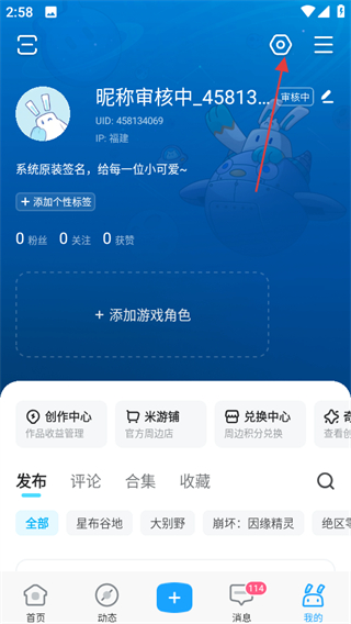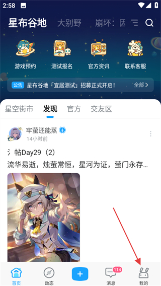 1、打開(kāi)米游社,點(diǎn)擊頁(yè)面右下角我的,可進(jìn)入個(gè)人中心頁(yè)面。
