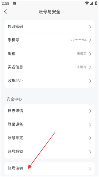 4、在賬號(hào)與安全頁(yè)面,點(diǎn)擊賬號(hào)注銷可進(jìn)入重要提示頁(yè)面。