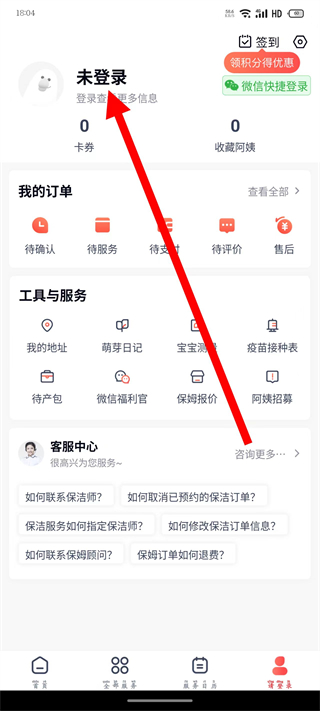 1、打開天鵝到家,點(diǎn)擊底部導(dǎo)航欄的我的,進(jìn)入個(gè)人中心頁(yè)面。