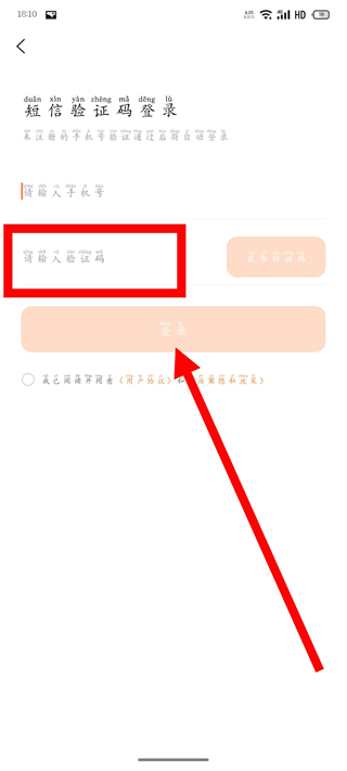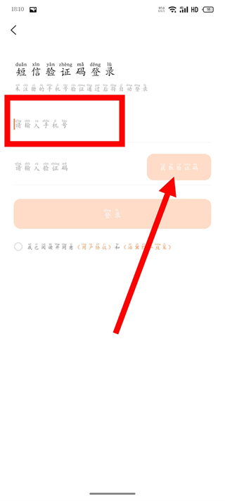 3、在短信驗(yàn)證碼登錄頁(yè)面,輸入手機(jī)號(hào),點(diǎn)擊獲取驗(yàn)證碼。