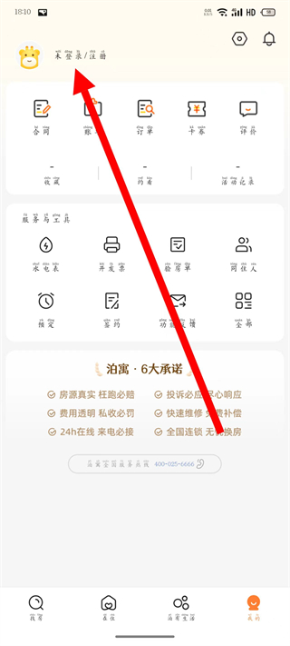 1、打開泊寓,點(diǎn)擊底部導(dǎo)航欄我的,進(jìn)入個(gè)人中心頁(yè)面。