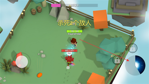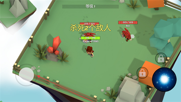 1、操控左側(cè)移動(dòng)搖桿控制角色移動(dòng),靠近紅色敵人,發(fā)動(dòng)攻擊,目標(biāo)是殺死指定數(shù)量的敵人。