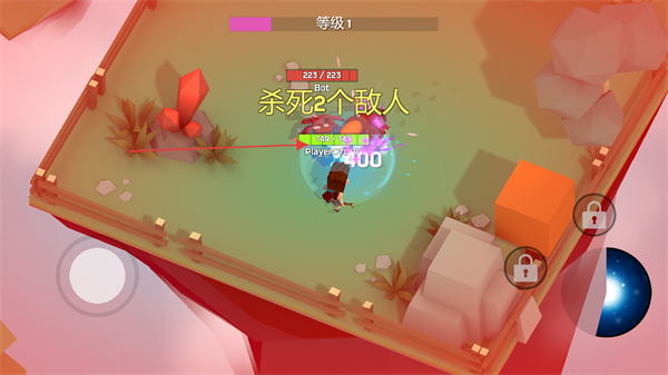 保留IO游戲的輕量化操作,同時(shí)加入大逃殺的生存淘汰機(jī)制,需在限定區(qū)域內(nèi)對(duì)抗其他玩家,最后存活者獲勝。