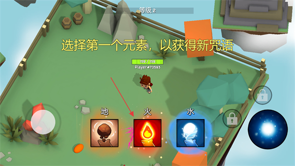 4、完成殺敵任務(wù)后,選擇元素如地、火、水以獲得新咒語(yǔ),提升角色能力,進(jìn)入下一級(jí)繼續(xù)挑戰(zhàn)。
