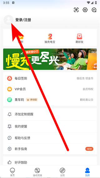 2、在個人中心頁面,點擊登錄注冊按鈕,進入登錄界面。