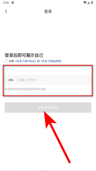 3、在登錄界面,輸入手機號,點擊獲取短信驗證碼。