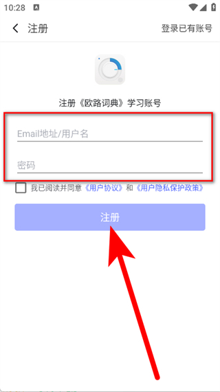 4、填寫(xiě)Email地址/用戶名和密碼,勾選后,點(diǎn)擊注冊(cè),完成賬號(hào)注冊(cè)。