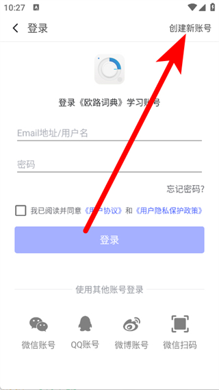 3、在登錄頁(yè)面,點(diǎn)擊創(chuàng)建新賬號(hào),進(jìn)入注冊(cè)頁(yè)面。