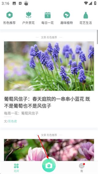1、在形色首頁,點(diǎn)擊底部相機(jī)圖標(biāo),進(jìn)入拍攝或圖片選擇頁面。