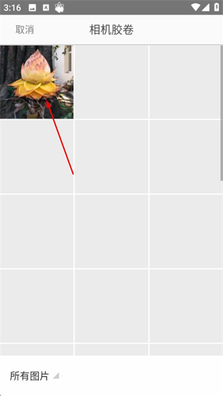 2、在該頁面,點(diǎn)擊相冊選項,進(jìn)入相機(jī)膠卷頁面選擇圖片。
